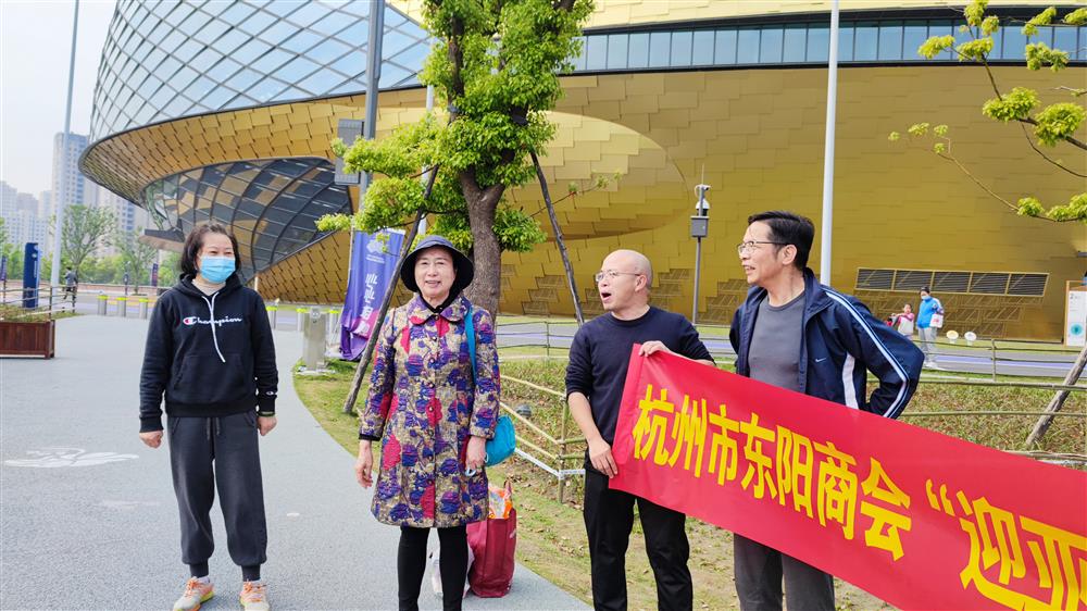 4月16日,杭州市东阳商会组织会员在拱墅亚运公园集体跑步