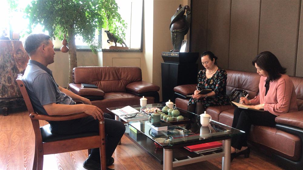 5月7日上午,商会秘书长与浙江泰林生物技术董事长叶大林进行座谈交流