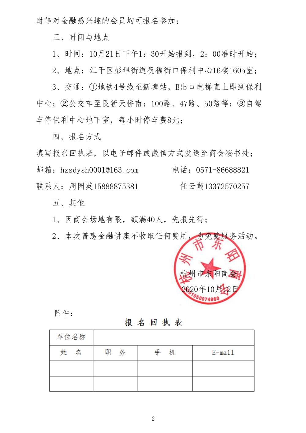 杭州市东阳商会大讲堂关于举行中小企业普惠金融研讨的通知(第三季)