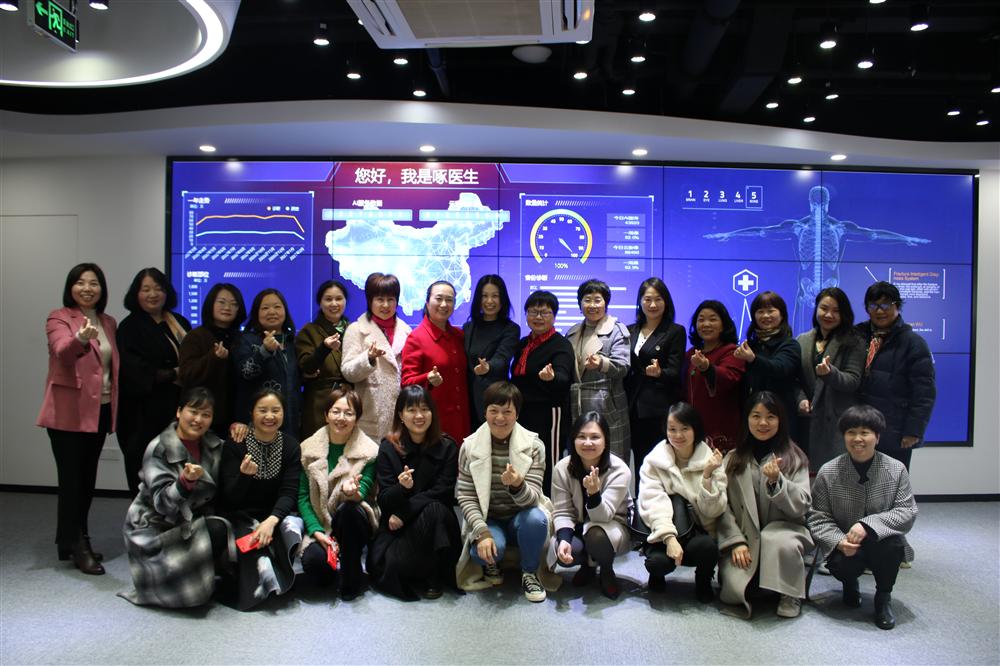 跨进健培科技公司,大家就被各大荧屏的即时数据和医学图像所吸引。公司谢助理引领大家参观并讲解了公司的主打产品——“啄医生”机器人的高超技术和诊断效果;解释了AI服务数据、云诊断数据等分布在全国各省市的实时统计数据;介绍了公司这些年来取得的重大成果和发展史等,女神们饶有兴趣地边听边看边提问,为健培公司开创的实用而先进的尖端诊断医疗技术和广泛应用范围赞叹。
