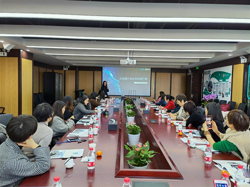 斯文又优雅的季红丽微笑感谢大家的到来,亲自为大家讲解了健培公司的发展历程、智能产品、应用场景、发展规划等。2012年,留学归国的双博士夫妻搭档程国华和季红丽选择杭州创立了健培科技公司,欲打造中国人自己的机器人医生。2013年,国内第一例医疗AI影像产品在技术团队努力下诞生,从此公司进入了快速发展通道,2014年阅片机器人“啄医生”问世;2015年作为西博会的主论坛,举办了国内第一个医疗人工智能的国际高峰论坛“西湖论健”,直至2019年的“西湖论健”均由健培公司主办或承办,在行业内外影响力越来越大,平均每届参会达万人次;2017年,“啄医生”亮相CCTV-1《机智过人》大舞台,人机大战中“啄医生”完美胜出; 2019年,高速智能无人值守安检机开发成功,分检速度相当于普通安检机的8倍,与邮政公司、快递公司进行了合作;2020年公司捐献了4台“啄医生”阅片机器人(价值500万元)驰援湖北,为抗击疫情作出积极贡献;2021年计划投资1亿美元在桐乡创建生产基地,今年生产高速智能安检设备100套。从检测人体到检测万物,健培科技在智能领域不断开拓创新,为社会和百姓做出了卓越贡献。