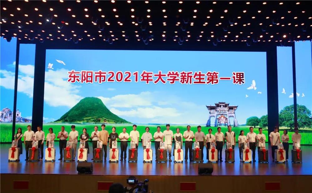 “东阳市2021年大学新生第一课”在全体人员合唱《歌唱祖国》中圆满结束。