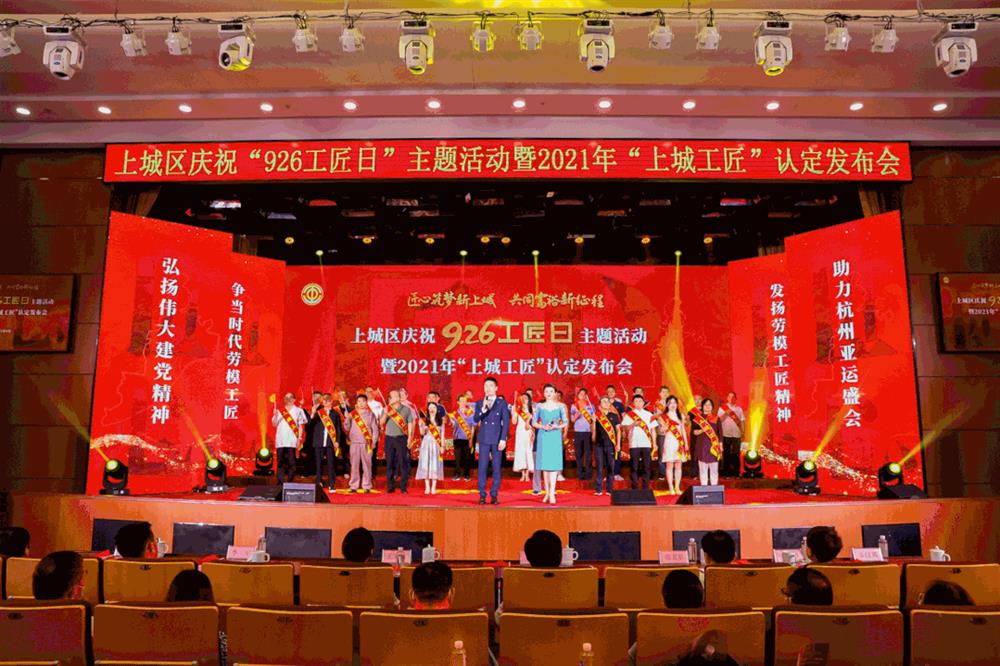 匠心筑梦新上城,共同富裕新征程。9月23日下午,上城区庆祝“926工匠日”主题活动暨2021年“上城工匠”认定发布会在区行政中心举行。可喜的是,获评的10位“上城工匠”中,杭州市东阳商会有两位企业家荣获该称号,他们分别是杭州端居文化艺术有限公司董事长李红伟和浙江杭州湾建筑集团有限公司董事长葛晓刚。