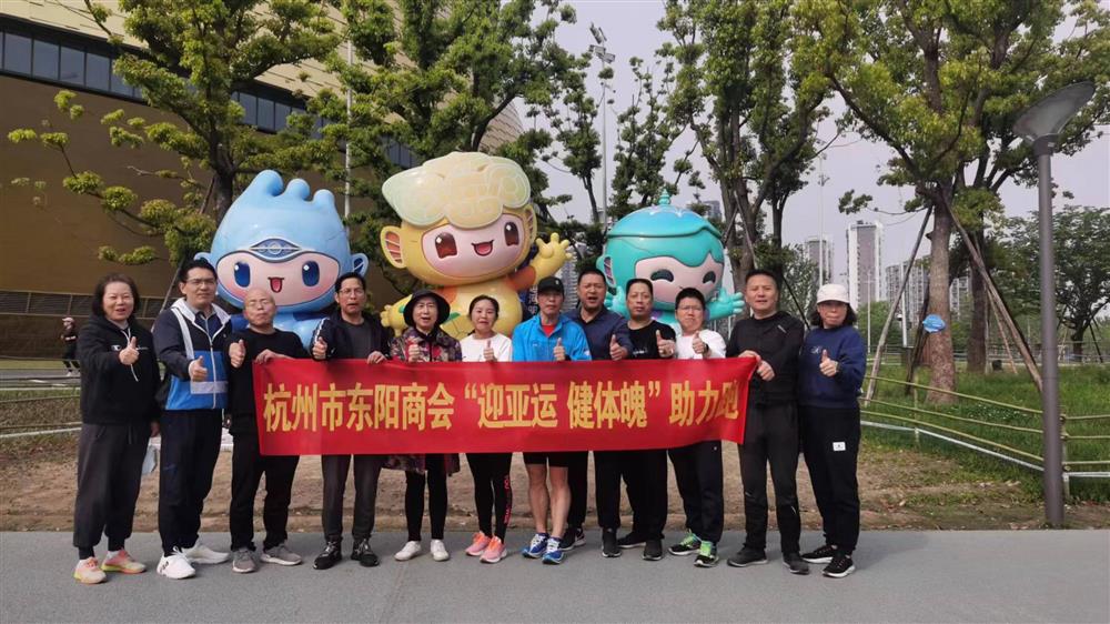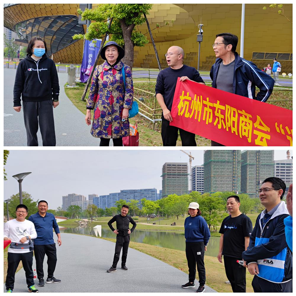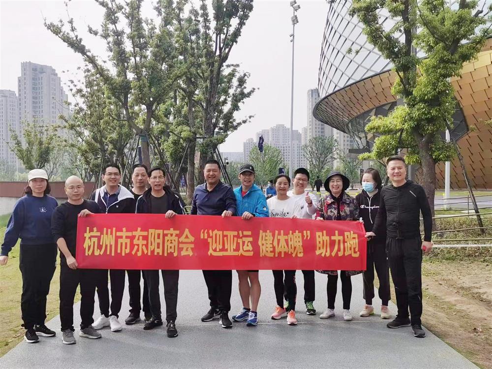4月16日上午,杭州市东阳商会组织的“迎亚运 健体魄”助力跑活动在崭新又空旷的拱墅区大运河亚运公园内举行,10多位跑步爱好者踊跃参加了活动。曾跑过100多个城市,目标跑完500个城市的长跑爱好者郭一群领衔,楼政权、陈飞龙、胡思新、厉锡平、方笑、葛龙刚、黄永庆及秘书处人员参加。9点正式跑步前,大家们在亚运吉祥物雕塑前共同表达心声,齐声喊出:“杭州市东阳商会祝杭州亚运会圆满成功。” 巧合的是,同一天“韵味杭州”马拉松、竞走项目世锦赛暨亚运会选拔赛也在杭州举行。开场由李惠兰作简短讲话并宣布开跑。