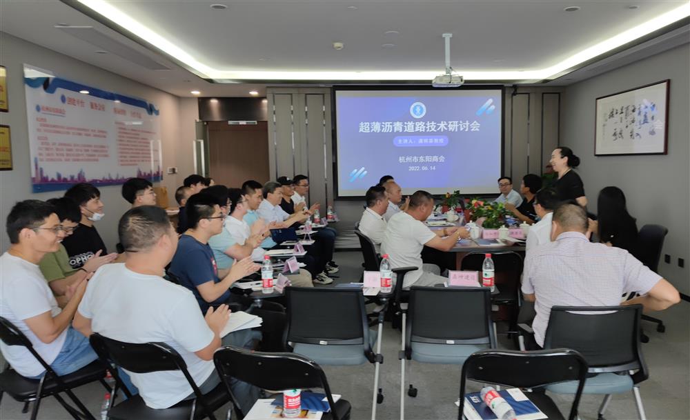6月14日下午,商会邀请华运通达董事长虞将苗教授为会员们分享“超薄沥青道路技术”专题