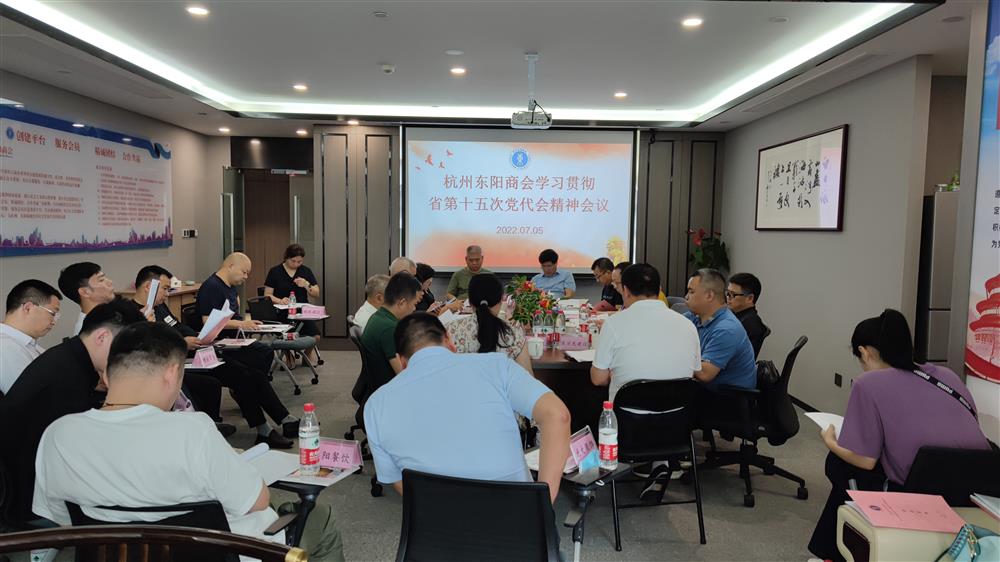 7月5日下午,杭州市东阳商会部分党员及企业家代表一起学习贯彻省第十五次党代会精神