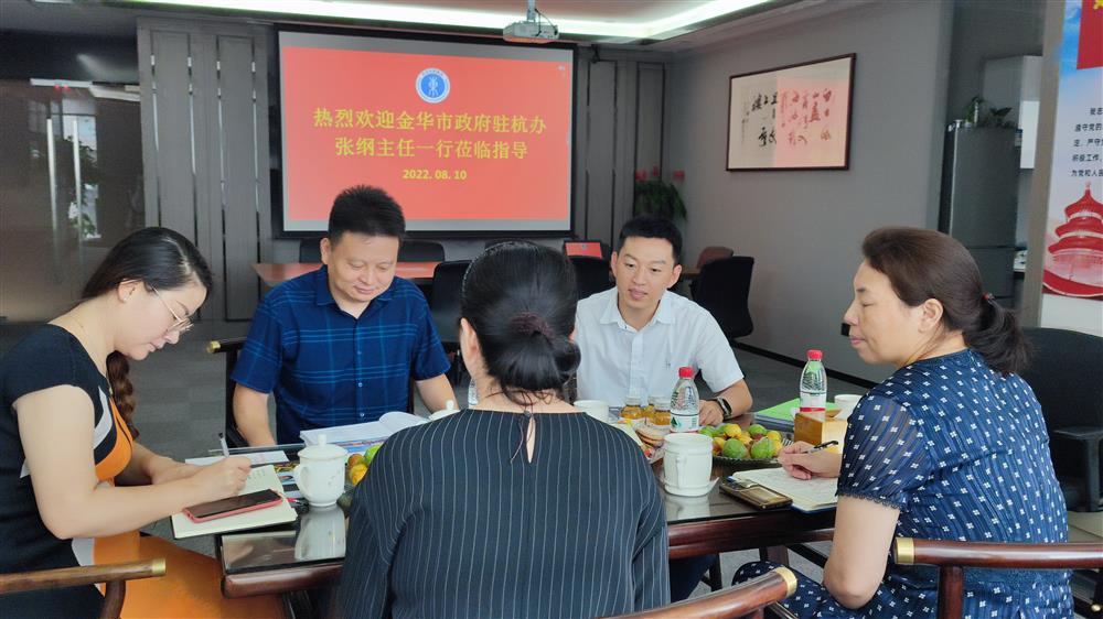 8月10日,金华市政府驻杭办张纲主任一行莅临商会交流指导