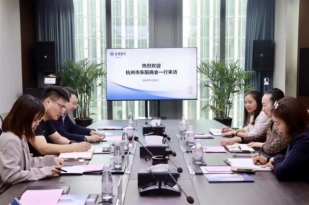 东望时代前身是成立于1993年的浙江广厦建筑集团股份有限公司,于1997年4月在上海证券交易所上市,证券代码:600052。2021年7月,东阳市国有资产监督管理办公室成为其实际控制人,后更名为浙江东望时代科技股份有限公司,简称“东望时代”。改制后公司主营业务为节能服务,经营模式为热水供应系统的节能化设计、运营及管理,为全国各大院校提供热水节能供应服务等。目前已涵盖全国18个省份,280多所高校,受益学生200多万,成为国内高校热水供应唯一的上市公司,公司下设浙江正蓝节能科技股份有限公司等7家子公司。东望时代自第十一届董事会换届以来,坚持党建引领,贯彻新发展理念,构建新发展格局,聚焦主业做精做强。公司管理层在主业确立、风险化解、管理提升等方面开展了一系列工作,目前已取得了明显成效。蒋旭峰董事长希望今后得到商会更多的关心支持,加强沟通联系,实现资源共享,信息互通。