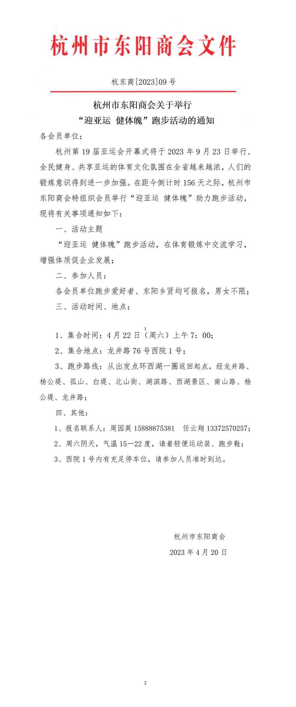 杭州市东阳商会关于举行“迎亚运 健体魄”跑步活动的通知