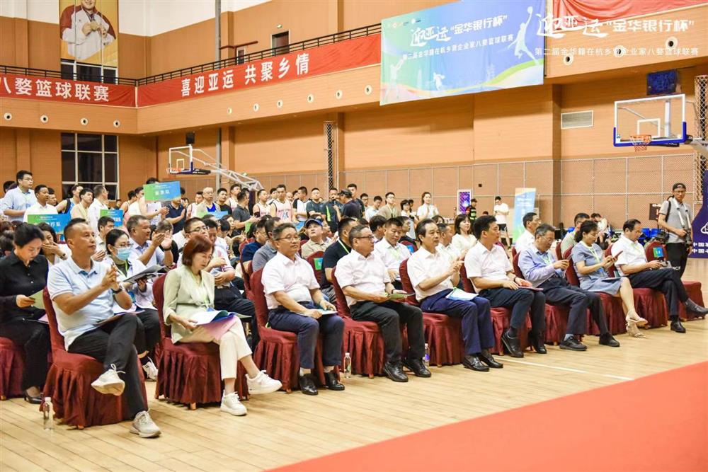 省人大常委会原副主任厉志海,金华市委常委、统战部部长王志强,金华市副市长庄凌飞,浙江省政府参事、省企业家协会驻会常务副会长黄小杭,浙江特殊教育学院院长黄宏伟,中国新闻社浙江分社副社长童静宜,浙报集团编委、浙江在线总经理方卫英,省体育局群众体育处处长徐勇,金华市人民政府驻杭州办事处主任张纲,副主任、金华市在杭婺商党工委书记罗恒等领导嘉宾亲临开幕式及球赛现场指导,杭州金华商会会长、新德集团有限公司董事长刘红军,执行会长、杭州嘉银投资有限公司董事长、浙江图灵算力研究院理事长孔小仙,副会长陈朝阳、傅军荣、贾立成及在杭“八婺”商会乡贤代表出席活动。