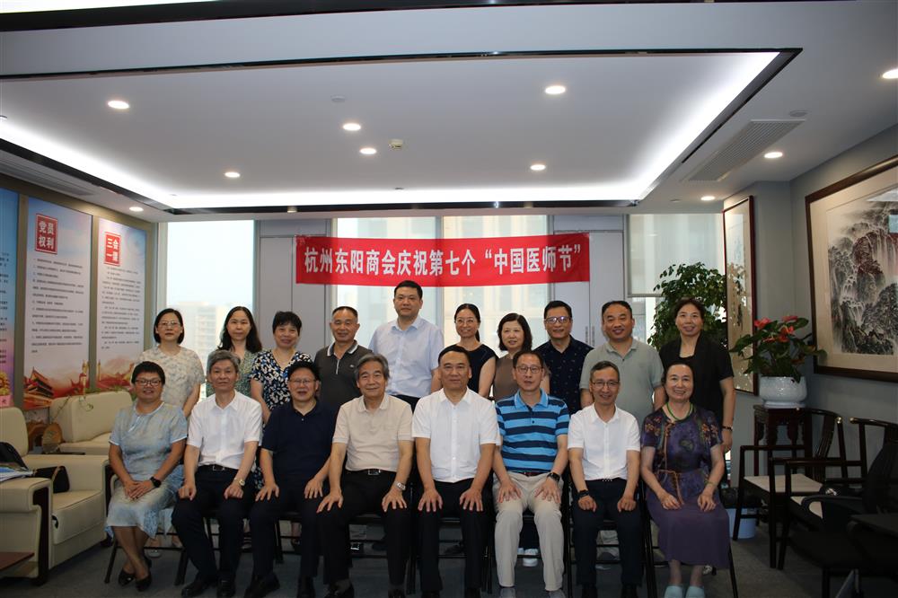 8月7日,杭州东阳商会在第七个“中国医师节”来临之际,特别邀请了浙大一院原副院长厉有名、省卫健委原体改处处长、二级巡视员申屠正荣,省医学会驻会副会长陆新成、省立同德医院院长胡智明、浙大妇院副院长陈新忠等在杭东阳籍省市医疗单位有关领导及专家代表20多人参加了座谈会,共同庆祝第七个“中国医师节”。