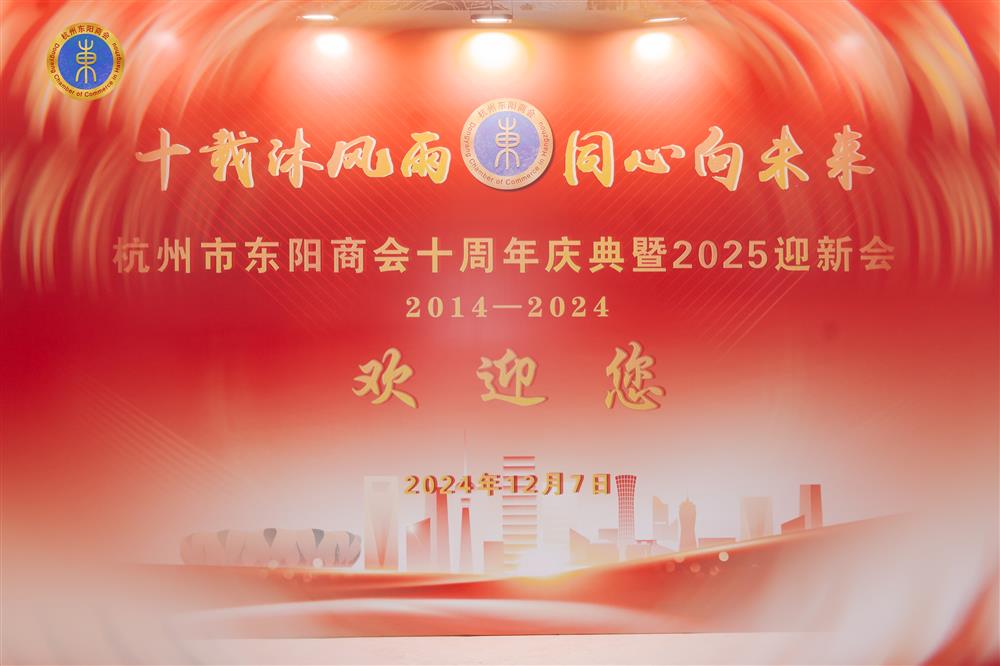 12月7日下午,十载沐风雨 同心向未来——杭州市东阳商会十年庆典暨2025迎新会在西子湖畔隆重举行。出席本次大会的主要领导有浙江省人大常委会原副主任励志海,省交通运输厅厅长蔡洪,杭州市副市长陈卫强,杭州市政协副主席、市工商联主席冯仁强,东阳市委书记楼琅坚,东阳市人大常委会党组书记、主任朱志杰,东阳市政协党组书记、主席方宪文,东阳市政协原主席、市乡贤联谊总会会长王正明,东阳市委常委、常务副市长郭锦明,东阳市委常委、统战部部长张伟钢等领导;大会还邀请了在杭东阳籍省、市机关有关领导及企事业单位老乡代表;杭州市工商联、民政局、金华驻杭办、八婺商会等特邀嘉宾;商会各会长、理事、会员等共380人欢聚一堂,回顾商会发展历程,畅叙桑梓情谊,共话家乡发展。