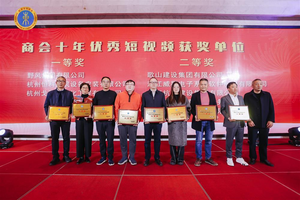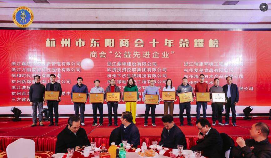 大会现场还对杭州市东阳商会“十年荣耀榜”先进单位和功勋人物进行了表彰。