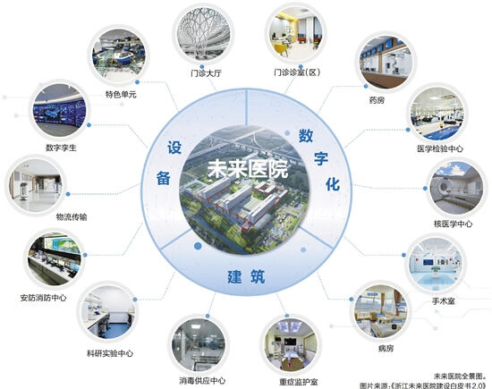 未来医院全景图。 图片来源:《浙江未来医院建设白皮书2.0》