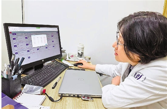 浙江省人民医院急诊医学科副主任李茜查看脓毒症风险预警信息。