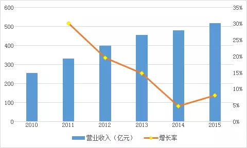 图1:2000-2015年中天建设营收及增长情况