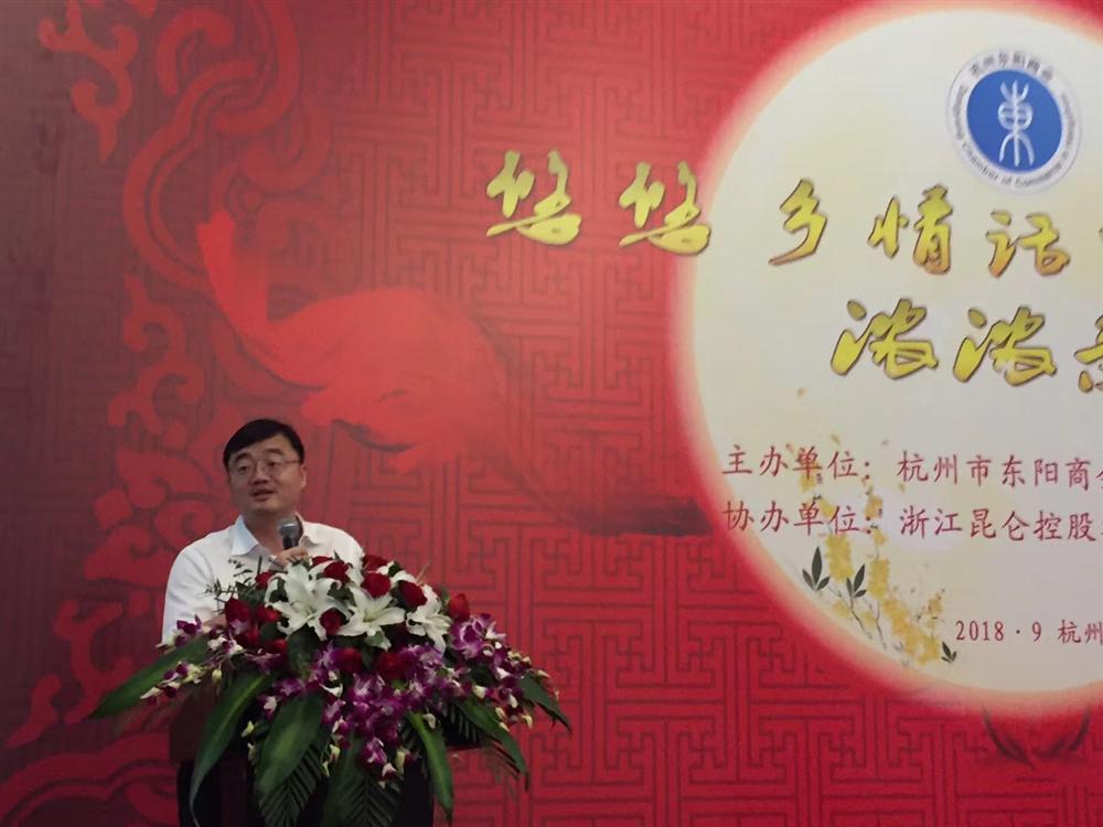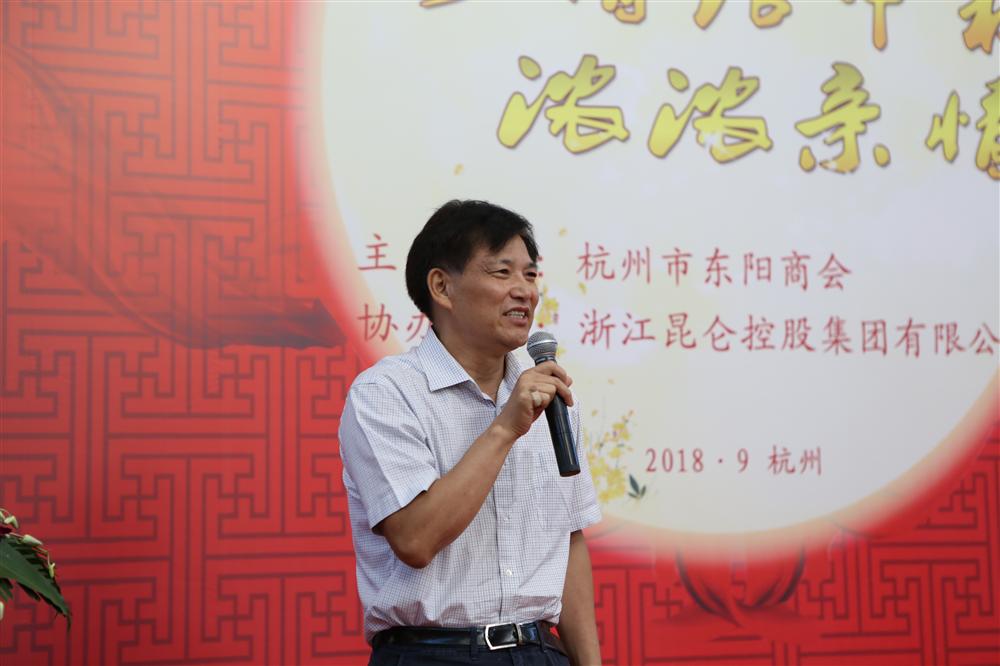 杭州市东阳商会会长楼永良发表了热情洋溢的致辞,向大家表示热烈欢迎和诚挚问候的乡音倍感格外亲切。他说,杭州市东阳商会是在杭东阳人资源共享、互帮互助的重要平台,在加强交流,密切沟通,整合资源,助推杭州东阳两地的各项事业发展发挥了积极作用。楼会长表示:众位乡贤在杭相聚欢度中秋佳节是一种缘分,商会的发展与进步离不开在杭各位领导和乡贤的帮助与支持,更离不开东阳市委、市政府领导的关心与支持。他还指出随着杭温高铁的建设、杭金衢高速的拓宽完成,杭州到东阳更加便捷快速,我们要创业在杭州、植根在东阳;创业在杭州、安家在东阳;创业在杭州、多回报东阳。这是我们杭州东阳商会各位企业家的共同心声。