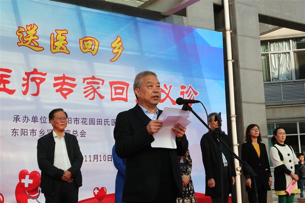 杭州市东阳商会名誉会长、花园集团董事长邵钦祥先生在义诊活动上讲话