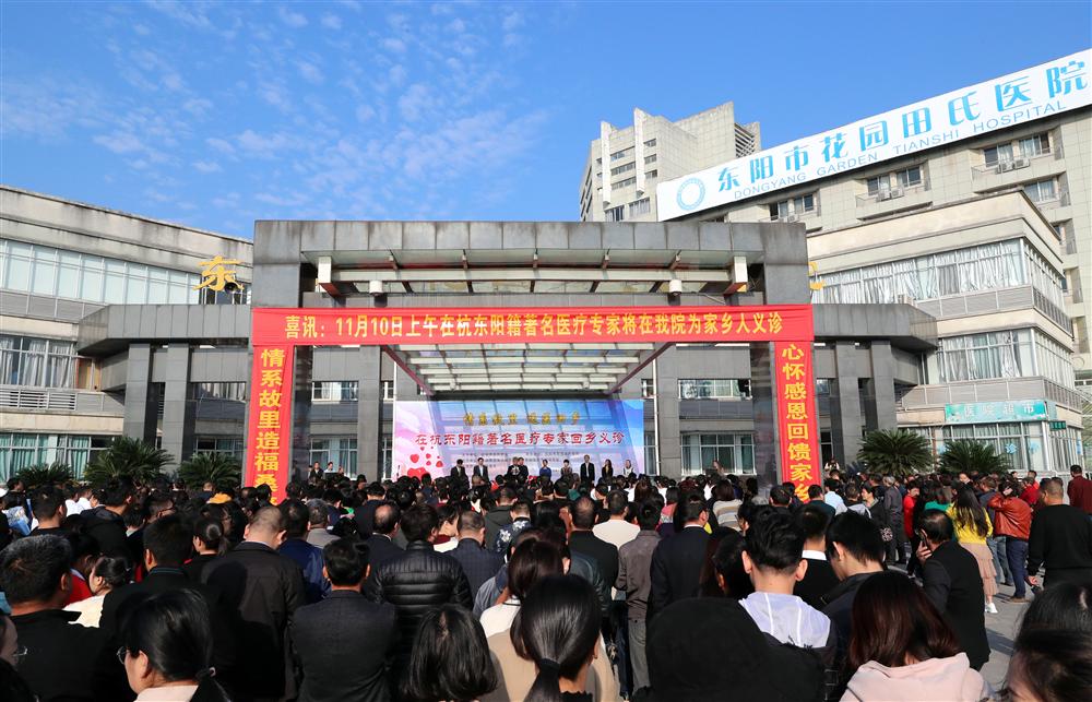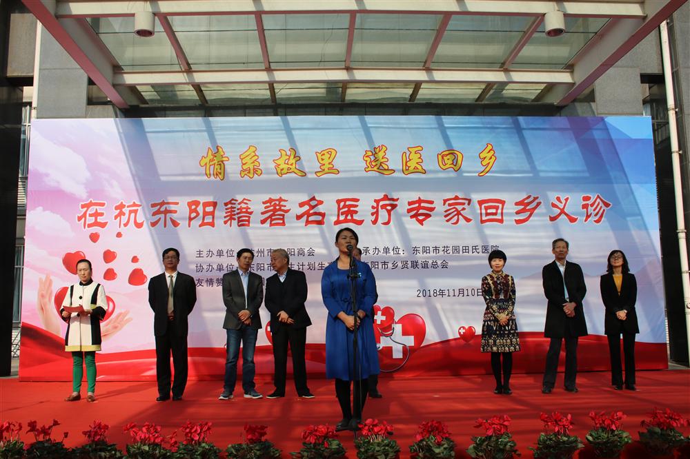 11月10日,杭州市东阳商会组织在杭东阳籍著名医疗专家开展“情系故里.送医回乡”精准医疗家乡行义诊活动在东阳花园田氏医院举行。本次活动旨在回报家乡、服务家乡,为家乡父老乡亲送上健康大礼包。义诊开始前举行了简短的启动仪式。东阳市副市长陈巧锦、东阳乡贤联谊总会会长王正明出席活动并讲话。东阳市卫计局杜卫良局长、杭州市东阳商会名誉会长、花园集团董事长邵钦祥、浙江省中医院副院长徐敏等领导出席。现场来自花园集团医务人员及周边闻讯而来的当地民众有1000多人参加开幕活动,气氛真是热闹非凡。活动由杭州市东阳商会秘书长李惠兰主持。